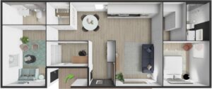 Obtenha capacidade extra instantânea adicionando quartos separados independentes ou Ilhas de quartos. Os acabamentos podem ser selecionados para combinar com cada ambiente de alojamento.