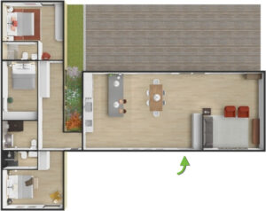 Modelos padrão projetados para uma excelente fluidez entre o interior e o exterior. As nossas casas têm uma sala com cozinha em espaço aberto e amplas superfícies de vidro com muita luz natural.